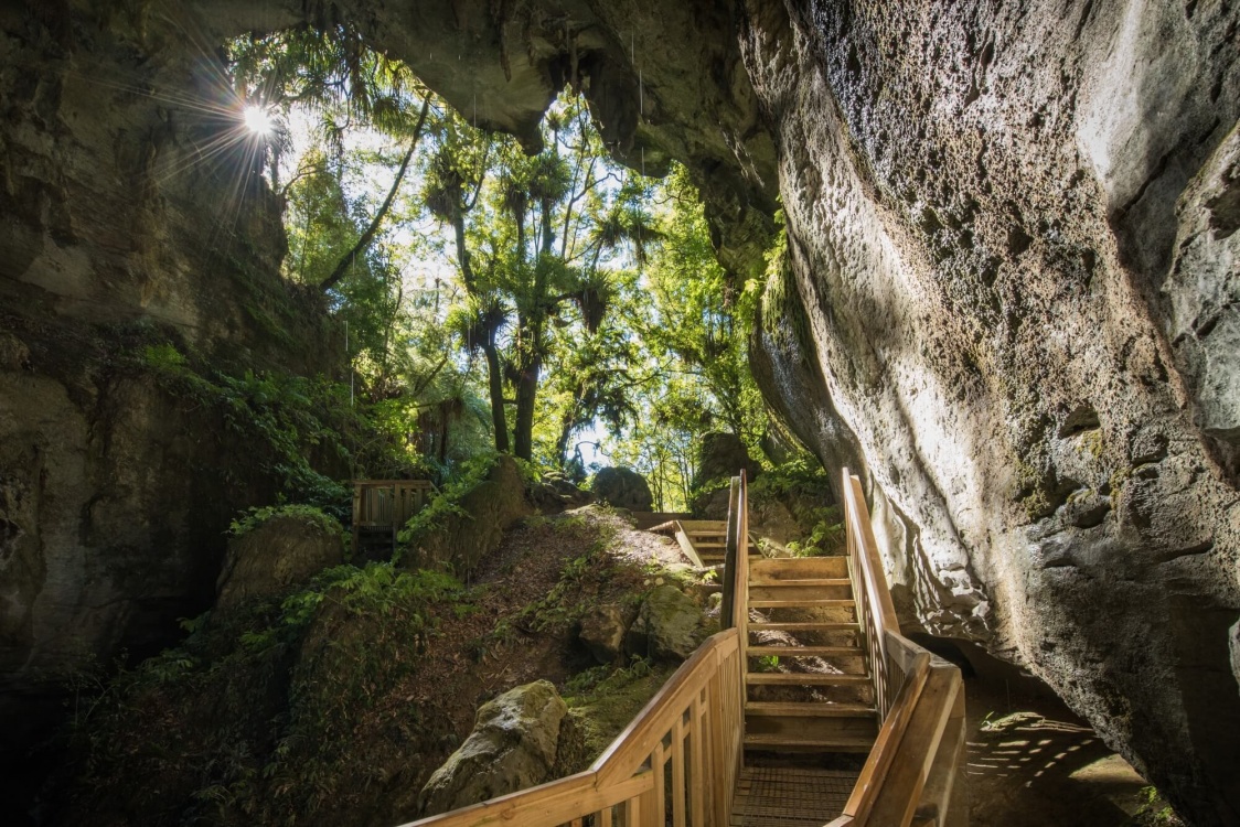 Следующая точка маршрута — одно из самых сюрреалистичных мест страны — пещеры Вайтомо. Мы попадём в подземный мир, своды которого усыпаны тысячами светлячков. Их мягкое голубое сияние превращает пещеру в подобие ночного звёздного неба.