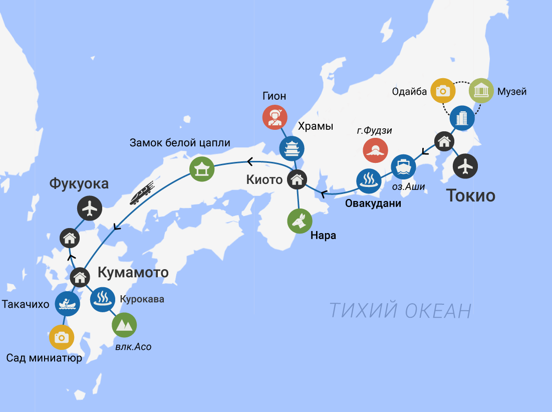 В этом маршруте откроется яркая культура Японии. Путешествие пройдёт через центральные и южные регионы, где мы исследуем самое интересное и окунёмся в уникальное разнообразие Японии.
