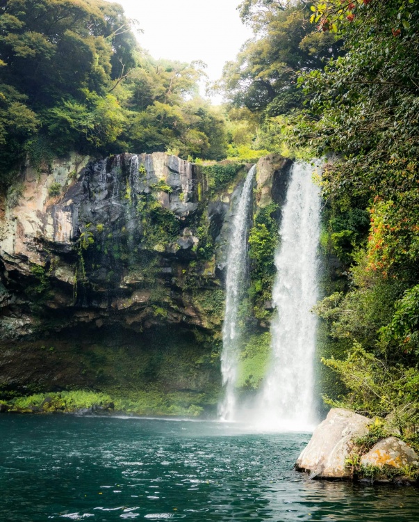 После доберёмся до городка Согвипхо, где совершим прогулку по лестнице среди густых зарослей до живописного водопада Чхонджиён. Ещё в городке можно посетить местный рынок с морскими деликатесами. Завершим день на мосту Saeseom Bridge, откуда будем созерцать закат.
