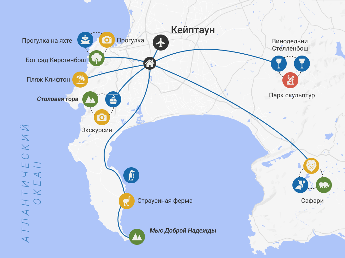 Программа завершается в Кейптауне. Вы можете улететь любым подходящим рейсом.