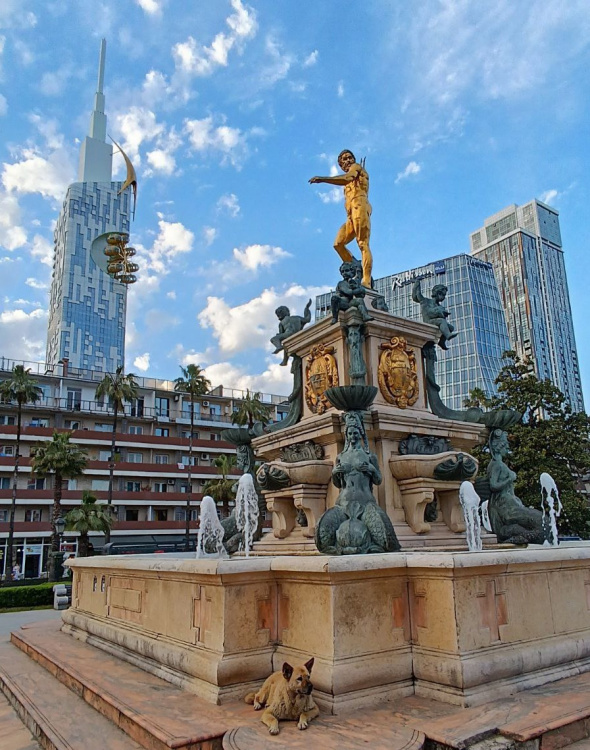 Спустимся в город пешком и пройдём по проспекту Руставели — центральной артерии города с многочисленными театрами, магазинами и изысканной архитектурой.