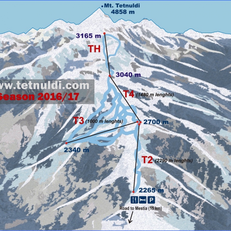 На этот раз мы отправимся на новый горнолыжный курорт – Тетнульди. Отсюда нам откроются невероятные виды на вершины Главного Кавказского хребта. Здесь тоже оборудованы трассы и для новичков, и для профессионалов. Их общая длина – около 25 километров(!), самая длинная трасса – 3,5 км. На Тетнульди работают современные кресельные подъёмники французской фирмы «Poma».