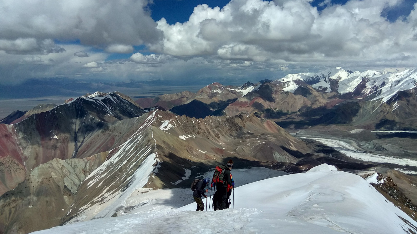 Сегодня вам предстоит акклиматизационный выход на гребень пика Петровского. Вы подниметесь до высоты 4 100 м. Отсюда при ясной погоде можно окинуть взглядом огромные пространства Алайской долины, увидеть рассыпанные между хребтами жемчужинки озёр и величественный пик Ленина во всей красе.