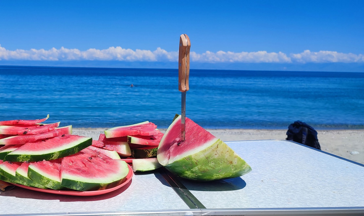Сегодня — день отдыха у озера Иссык-Куль. Можно провести его на пляже: купаться, загорать, просто наслаждаться покоем у воды.