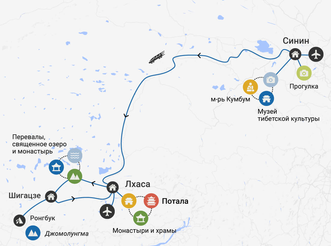Комфортный маршрут для всех: увидим главные святыни Тибета, прокатимся по высокогорной железной дороге и прогуляемся у подножия Эвереста!