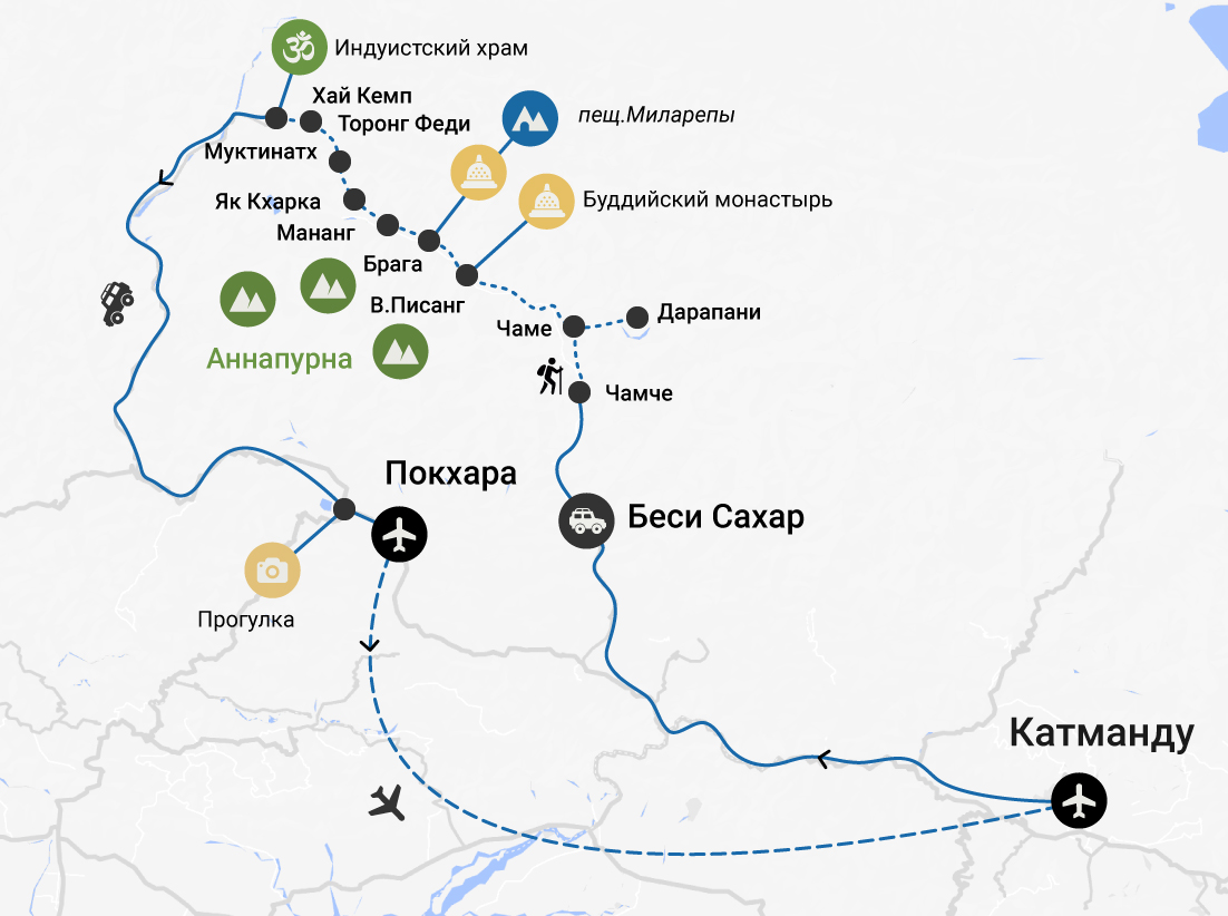 Треккинг вокруг Аннапурны входит в ТОП-10 самых красивых маршрутов мира. Мы пройдём горными тропами больше 100 километров и увидим удивительные места: рисовые террасы, бамбуковые заросли, роскошные леса и отдалённые деревушки. А ещё совершим переход через перевал Торонг-Ла на высоте 5 416 м! Это ли не повод для гордости :)