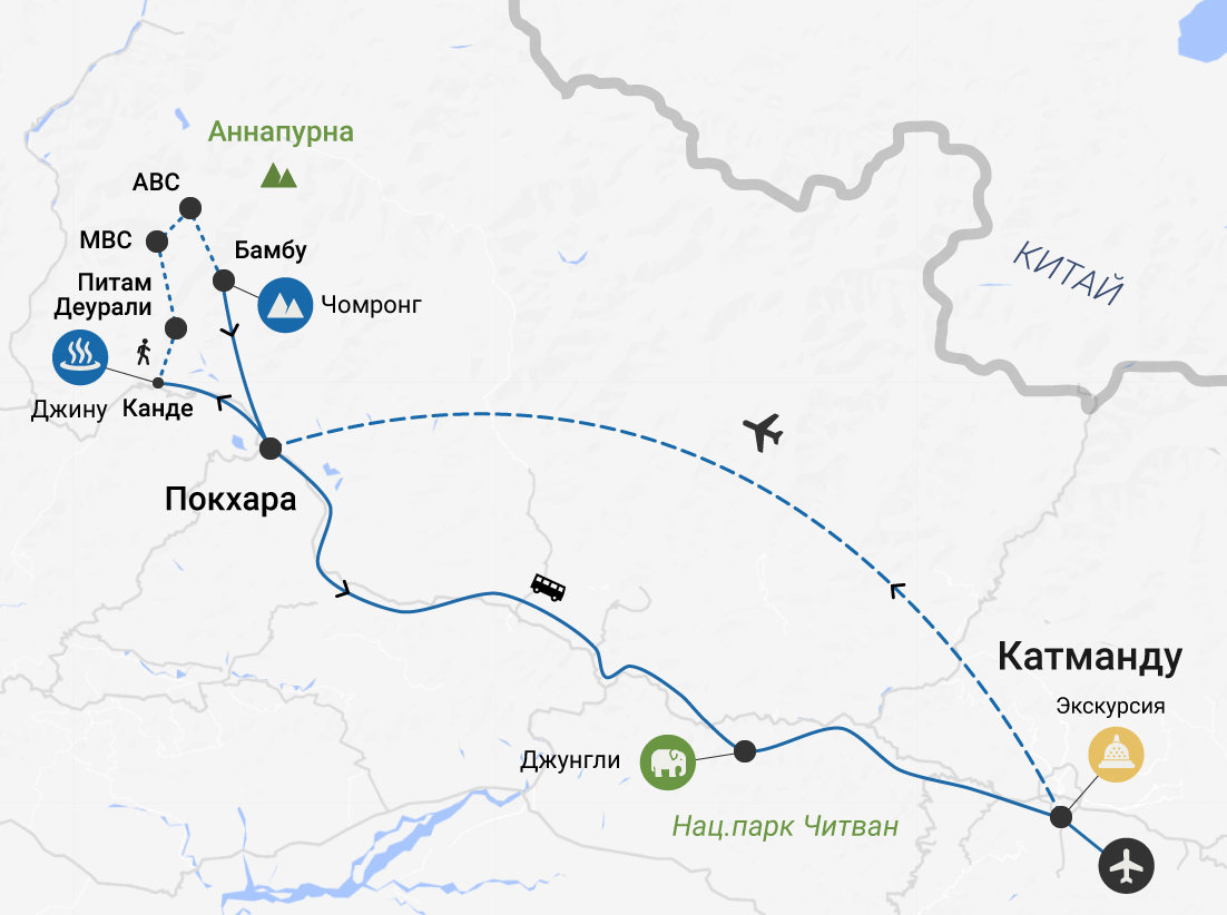 Будет один внутренний перелёт из Катманду в Покхару, по маршруту летают небольшие Боинги и АТR.