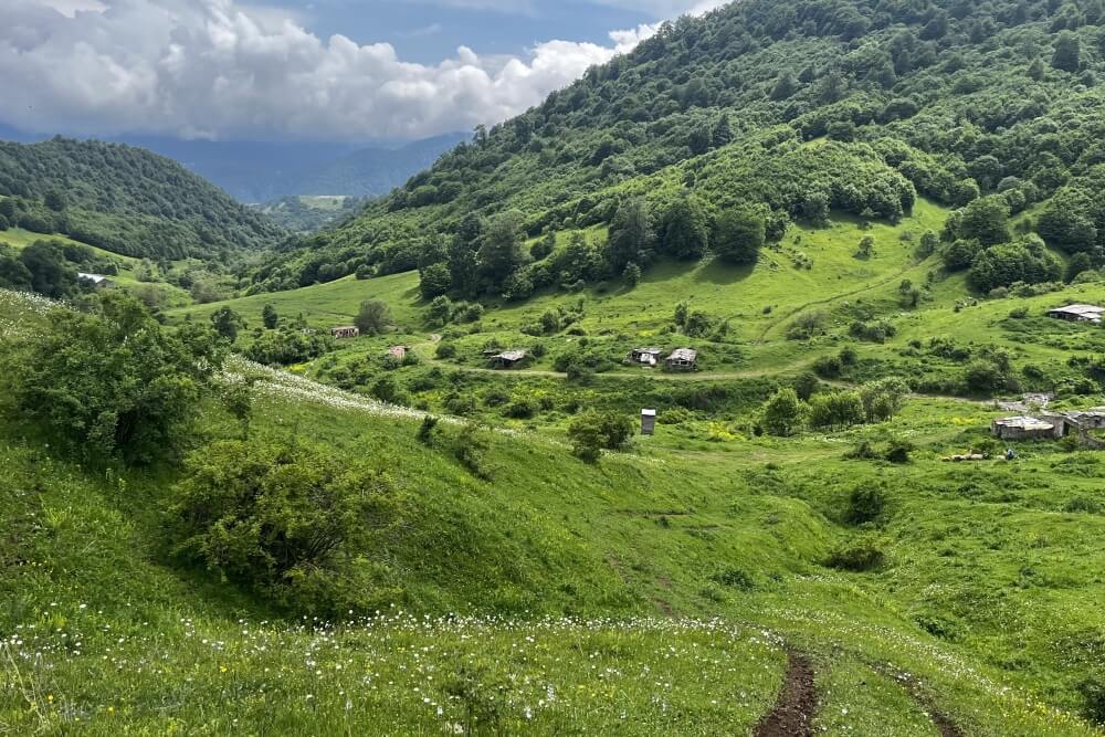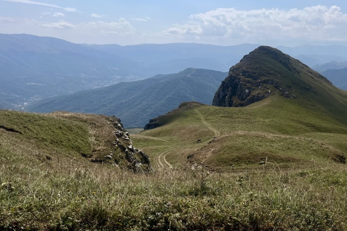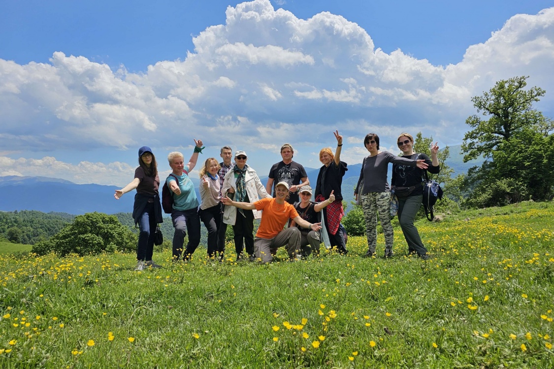 Сегодня маршрут станет длиннее и разнообразнее. Мы поднимемся выше лесной зоны и выйдем на открытые горные склоны. С тропы будут видны цветущие луга и панорамы окрестных гор. На одной из полян устроим небольшой привал.