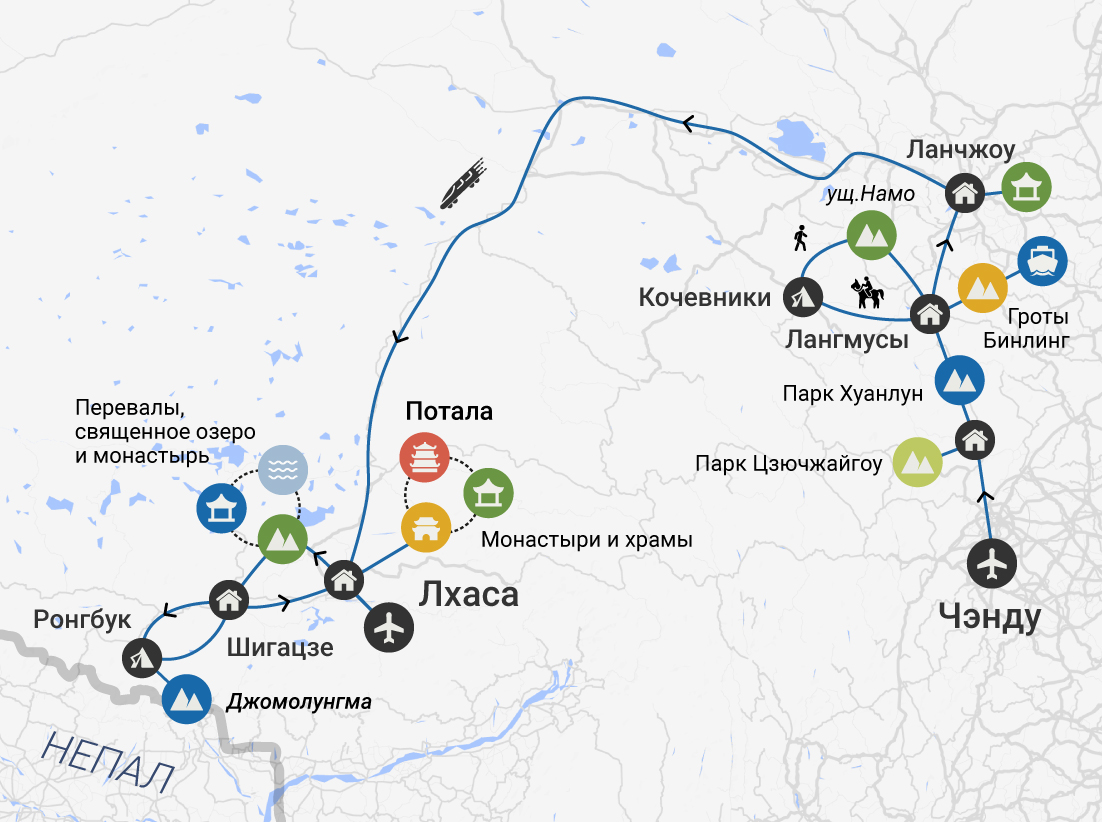 Вторая половина путешествия проходит по Тибетскому Автономному району, где действуют особые условия пребывания и программа может быть скорректирована в зависимости от местных административных требований.