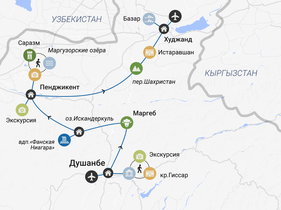 В этой насыщенной программе мы за 7 дней успеем посмотреть разные грани этой солнечной страны: погуляем по трём древнейшим городам Таджикистана, посетим этнический посёлок и проникнемся местными традициями и бытом, побываем в горах, где увидим необычные цветные озёра и даже «Фанскую Ниагару».