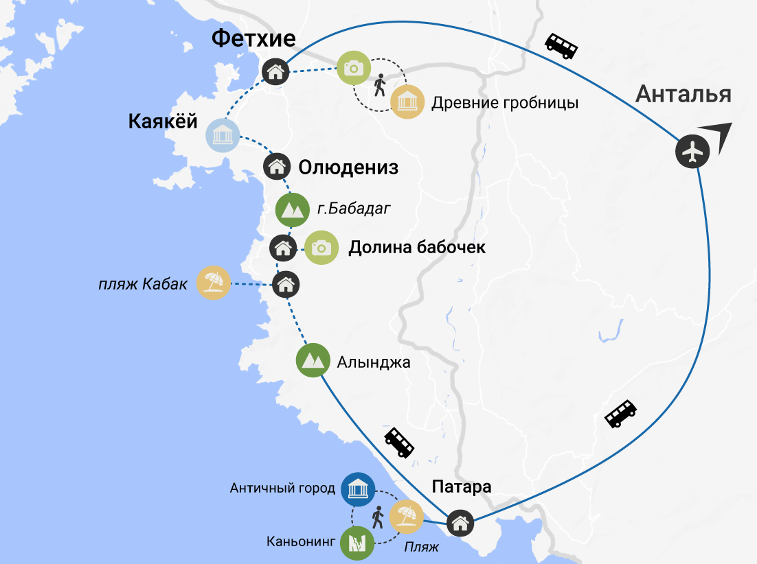 Это многогранное путешествие по Турции, в котором мы успеем пройти пешком вдоль Средиземноморского побережья, забраться в горы, отдохнуть на райских пляжах и искупаться в лазурной воде, увидеть древние города и напитаться солнцем и витаминами из сочных турецких фруктов.