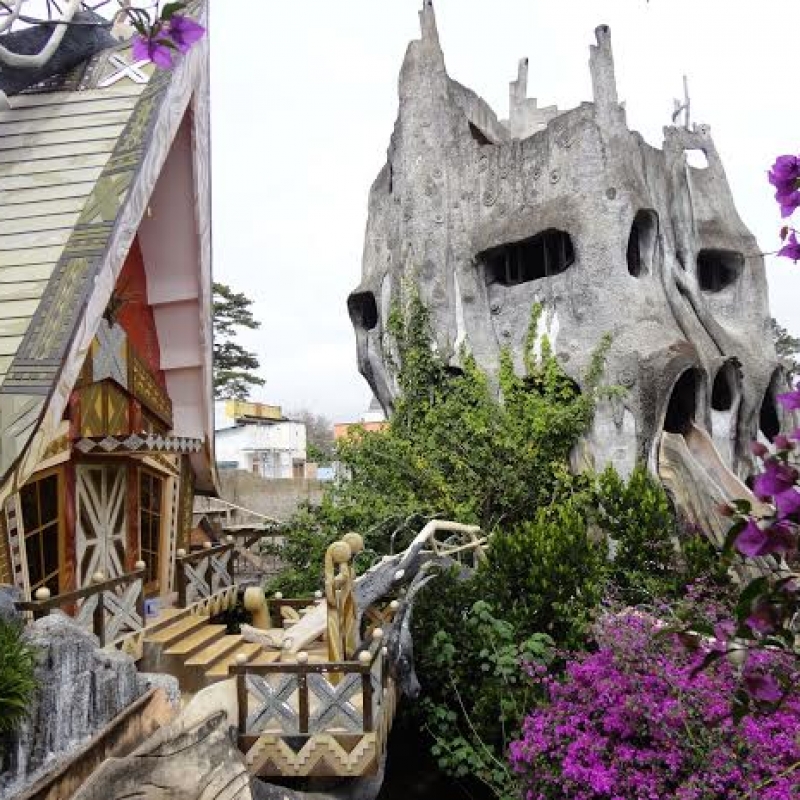 После этого посетим необычное здание под названием «Сумасшедший дом». На самом деле это гостиница, архитектура которой будто сошла со страниц сказки: она исполнена в форме дерева, оплетённого паутиной, с тоннелями-переходами и причудливыми окнами. А на территории можно увидеть домик эльфов!